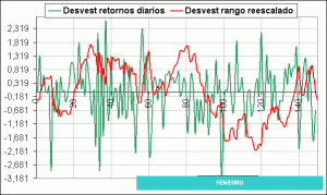Los descensos de las últimas sesiones han provocado un repunte de la volatilidad y un giro al alza de su curva de desviación estándar. Les muestro el aspecto de esta curva montada sobre 150 sesiones, aún con mucho recorrido al alza, aunque su giro al alza no se haya producido desde un extremo negativo, lo que le daría más fuerza a esta herramienta.