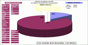 Como podemos ver en este gráfico circular, al cierre de la sesión de ayer, lunes, el 86% de los valores del Ibex 35 fijaron mínimos por debajo de los mínimos de la semana pasada.