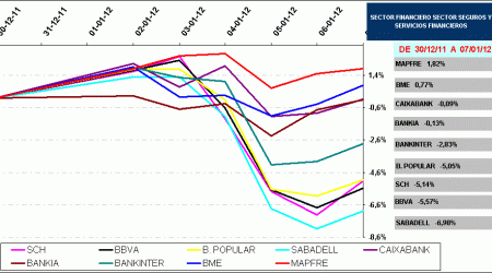 Reseñable el comportamiento de SCH con una vehemente recuperación en los primeros meses (tras hacer suelo en marzo/2009) para meterse en un movimiento lateral en los siguientes años.